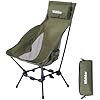 Wildhiker Portable High Back Folding Camping Chairs – Compact with Dual Sitting Modes, Pillow, Arm Pads and Side Pockets – Lightweight Chair for Motorcycle, RV, Festival, Travel – Green