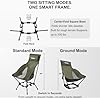 - Two Seating Modes for Different Scenes:Switch between standard height for daily outings or low-sit mode for beaches, riverbanks, and sand. Anti-sink pads prevent slipping on soft terrain, making this folding camping chair versatile for all outdoor settings