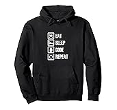 - This minimalist yet expressive design is perfect for all passionate programmers, developers and tech enthusiasts. It features four iconic symbols of cutlery for eating, a bed for sleep, a computer mouse for coding and a repeat symbol for the never-ending cycle of programming. The clear black and white design provides a modern, timeless look and clearly highlights the message Eat Sleep Code Repeat. The design embodies the typical everyday life of many IT professionals and software developers who dedicate themselves to their projects with full dedication. Whether as a gift for an avid coder or as a statement for your own lifestyle, this design brings the passion for programming perfectly to the point.