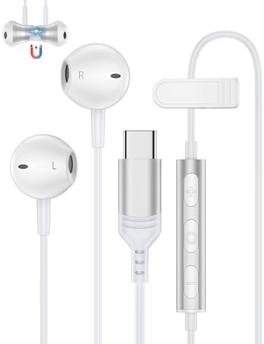 Features: Headphones with Microphone for iPhone 16 Noise isolating earbuds usb c fit well and feel good in your ear, sound quality is premium, blocking unwanted ambient noise. Multifunctional USB C Earbud & in-ear Headphones With this wired earphones for iPhone, you can easily control your phone. For example, when listening to music on your phone, click the control button once to pause/resume playing the music; double-click to play the next song; and triple-click to play the previous song. When you receive an incoming call, click the control button to answer the call; long press to reject the call. Specification: Material: Metal+ Plastic Color: White Package List: 1Pack Magnetic Earbuds for Google Pixel Universal Compatibility: --iPhone 16/16 Plus/16 Pro/16 Pro Max/15/15 Pro/15 Pro Max/15 Plus; --Samsung Galaxy S25/S25+/S25 Ultra/S24/S24 Ultra/S23 Ultra/S23/S23 FE/S22 Ultra /S22 5G/S22+ 5G/ S21 Ultra 5G/S21 Plus 5G/S21 5G/S20 Ultra 5G/S20 Plus 5G/S20 5G/S20 FE; --Samsung Galaxy Z Fold Special/Z Fold6/Z Fold5/Z Fold4/Z Fold3/Z Fold2/Z Flip6/Z Flip5/ Z Flip4/Z Flip3/Z Flip2; --Samsung Galaxy Tab S10 Ultra/S10+, HTC, Moto, LG, One Plus, Kindle fire, PS5, more other USB-C devices. --Google Pixel 9/9 Pro/9 Pro XL/8/8Pro/7/7pro/6/6a5/4xl/3xl/3a/4/4/2xl/2; --iPad, iPad Pro,iPad mini, iPad Air; ***If your USB-C device has a 3.5mm audio port, this usb c earphones magnetic may not support calling, such as Galaxy S9/S8/Note 9/Note 8/S10, ipad pro 11", ipad pro 12.9". For ipad pro 2018, it can’t support phone call and music control.***