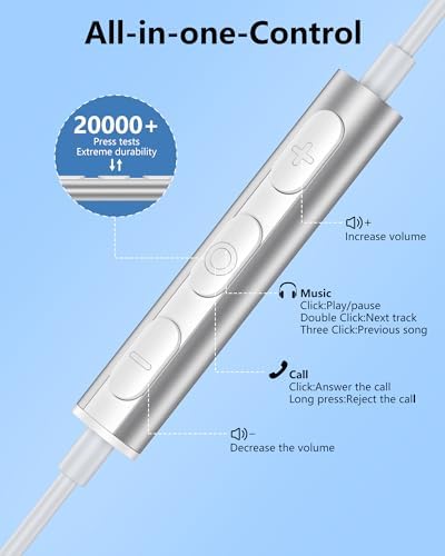 - 5. HD Mic & Volume Control- Ear phones with cord include an inline remote for volume control, skipping tracks, and managing calls. Furthermore, USBC wired headphones have an integrated microphone for hands-free calls, which can be convenient for making calls or using voice assistants. The passive noise cancellation design can help block out external noise, and help to provide a more immersive listening experience, whether you're listening to music or making calls