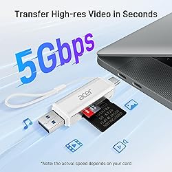 【Ultra-Fast Data Transfer】Experience blazing-fast 5Gbps data transfer with this USB 3.0 SD Card Reader, ensuring quick and efficient file transfers for photos, videos, and other media. Backward-compatible with USB 2.0 for added flexibility. Easily review and transfer data from security cameras, wildlife monitors, or car cameras, gopro without hassle(📌Note:only reads and transfers data from the SD and TF card, not directly connect to the camera) 【Simultaneous Dual-Card】Save time and boost productivity with dual card slots that allow simultaneous reading and writing on both microSD and SD cards. USB-A and USB-C dual header design makes the micro SD Card Reader perfect for photographers, video editors who need quick and efficient file management 【Compact & Travel-Friendly】Designed for convenience, the slim and lightweight card reader for camera memory card fits perfectly in your camera bag or laptop sleeve. Protective covers at both ends shield the ports from dust and liquid, while the attached cord keeps everything secure and easily accessible. A reliable companion for on-the-go professionals and creatives 【Plug-and-Play】The SD Card Reader for PC does not require driver or software installation, just connect to your device and start transferring files instantly. Compatible with Windows 11/10/8/7, macOS, and most Android devices. Crafted from heat-resistant aluminum materials, this SD Card Reader for PC delivers reliable performance and enhanced durability, even during long working 【Wide Device Compatibility】The USB C SD Card Reader works seamlessly with PCs, computers, laptops, cameras, smartphones and tablets featuring USB-C or USB-A ports, including MacBook Air/Pro, XPS, iPhone 15/16, iPad Pro, Samsung Galaxy S23, Microsoft Surface, Acer Aspire, and Predator series. Perfect for quickly accessing files directly on your device without additional apps or internet connections(📌Note:Not compatible with “Lightning” port devices)
