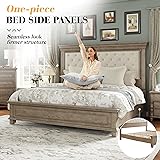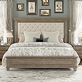 LUXOAK Solid Pine Wood King Bed Frame with 69" High Upholstered Headboard, Transitional Style Platform Bed, No Box Spring Needed & Easy Assembly, Button-Tufted Chenille Fabric, Antique Taupe