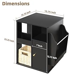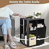 - rotating end table with storage, black TooCust Rotating End Table with Storage, Rotating Side Table Living Room, Side Table with Magazine Holder, Basket and Cabinet, Square Rotating End Table with Diverse Storage (Black)