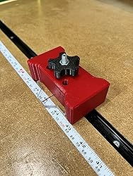 - This stop block is designed to work with "standard" T track similar to the link below, with a 3/8" wide opening. This block is easily removable ad allows for a clear workspace when not in use. https://a.co/d/6b5kchn Heavy duty acrylic pointer that allows great visibility to measuring tape underneath, and has two screws for micro adjust feature to dial in the perfect cutting dimension. Stop Block comes with: (1) Stop block in the color of your chosing (1) Acrylic Pointer with mounting hardware (1) 1/4-20" T bolt (1) Washer (1) Knob