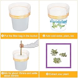 5 gallon filter bag for hydroponics gardening with filter screen.Nylon transparent filter bag filtration more thoroughly Our filter bags are made of high quality nylon mesh screen.Applicable between 130-150 degrees Celsius.266-302 degrees Fahrenheit Filter bag with drawstring closure can be well fixed in different containers and Double-stitched edges for durability Various mesh sizes available. 25 Micron to 220 micron.Different colors for different mesh sizes, easy to differentiate You will receive 1 filter bag with 1 filter screen in your choice between 25-220 mesh.Selection of different mesh sizes according to filtration requirements