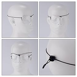 - Specification: Color: transparent, black Material: pc Product Size: 7.6x6.2cm/3x2.44in Package details: 2 x eye shields 2 x straps Note: Due to manual measurement, the size and weight may have a certain error. Due to the difference between monitors, there may be a slight color difference existed.