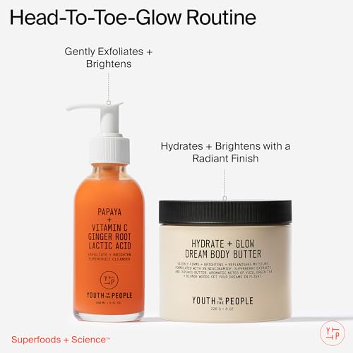 Youth To The People Head-to-Toe Glow Routine - Superfruit Papaya + Vitamin C Gentle Exfoliating Face Cleanser (5oz) + Dream Body Butter (8oz)