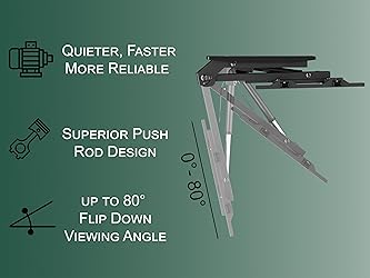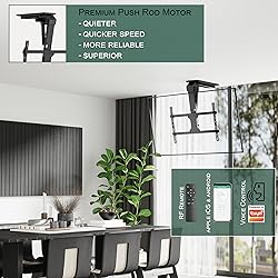 Ultimate Viewing Flexibility: The motorized tv mount offers seamless 0-80 degree viewing angles, ensuring optimal screen visibility from any position in your space. By holding TVs from 37 to 75 inches, it accommodates a broad range of screen sizes, putting an end to uncomfortable neck craning and allowing everyone in the room to enjoy a perfectly adjusted view seamlessly controlled via Tuya app; enhance your entertainment experience with effortless customization. Innovative Space-Saving Design: The ceiling tv mount flip down transforms your room by saving floor and wall space; its elegant mechanism retracts your television into the ceiling when not in use, decluttering your living area. Ideal for both flat and pitched ceilings, it harmonizes functionality with aesthetics, giving you the freedom to enjoy a sleek, modern look without compromising on entertainment convenience. Effortless Control & Convenience: With the remote tv mount motorized feature, adjust your TV's position effortlessly using the RF remote control, complete with programmable memory settings. Precisely configure your preferred angle or position, then save it for future use, guaranteeing a consistently ideal view. This intuitive control system enhances user comfort, putting you always in command, just at your fingertips. Integrate with Your Smart Home: Compatible with Apple iOS and Google Android, this motorized tv mount seamlessly integrates into your smart home ecosystem. Experience state-of-the-art convenience by controlling your TV's position with voice commands or a simple tap on your smartphone; feel empowered as you transform your viewing setup into an intelligent, tech-savvy haven, perfect for those embracing a connected lifestyle. Robust & Reliable Construction: The drop down tv mount from ceiling supports up to 99 pounds, ensuring durable, reliable performance for peace of mind. Crafted with high-quality materials, it guarantees strength and stability for safe home use. Enjoy superior build quality and reinforced confidence that your valued television is securely mounted, unlocking a world of innovative viewing without compromising on safety.
