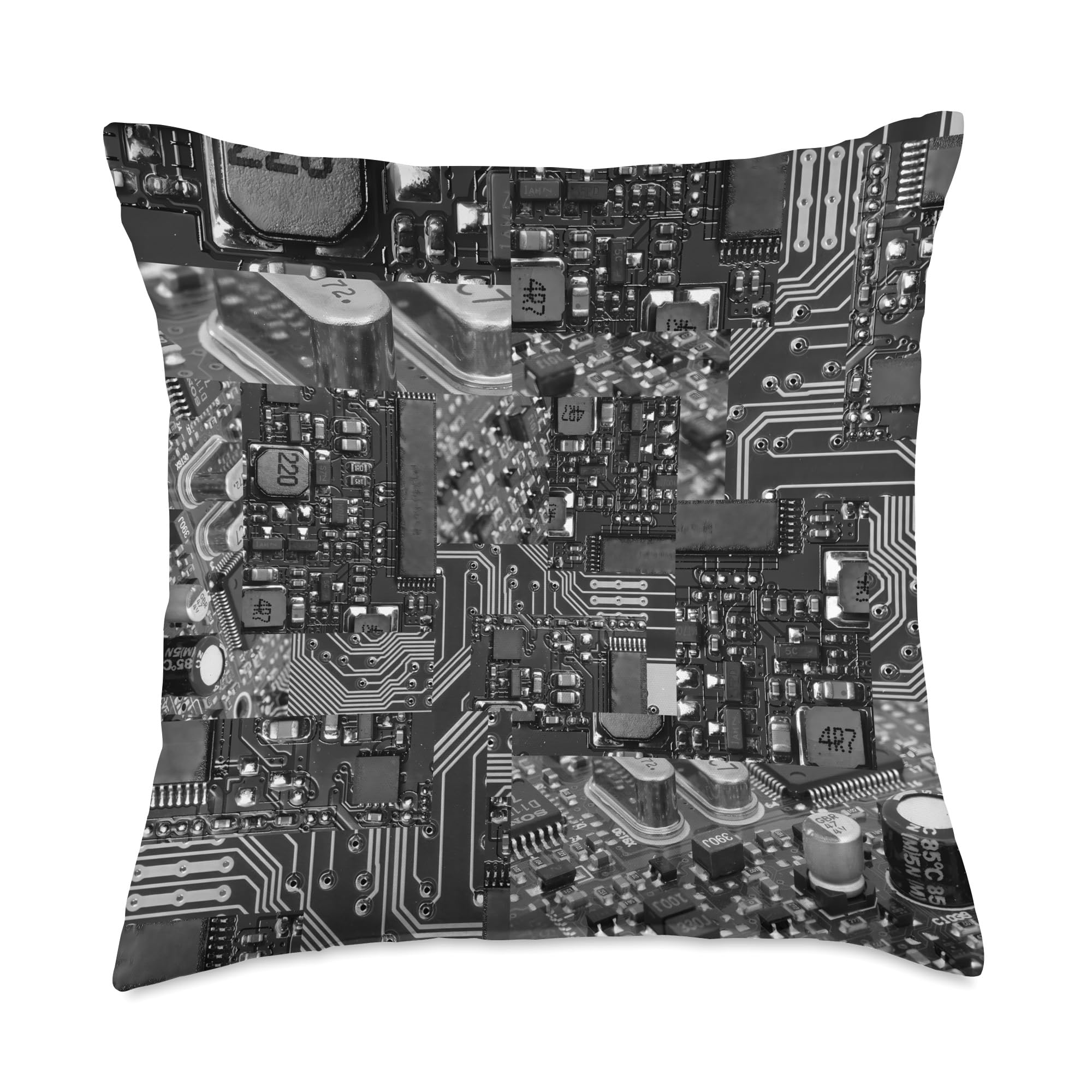 Electronic Pattern Circuit Board Image Print Collage Green Throw Pillow