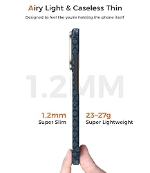 [Kevlar Strength, Stealth Style]: Crafted from 100% genuine DuPont Kevlar, the ArmorGrid ArmorAir Case for iPhone 17 Pro Max offers exceptional strength in an incredibly light form. Its deep Azure Blue finish delivers a sleek, minimalist look while offering rugged, long-lasting protection. [Minimal Bulk, Maximum Protection]: Measuring just 1.2mm thin and weighing only 25.7g, this slim protective case for iPhone 17 Pro Max delivers reliable daily protection without adding bulk. Raised edges around the camera help prevent scratches and impact damage. [Compatible with MagSafe]: Built-in precision-aligned magnets make this MagSafe case fully compatible with all magnetic accessories, including magnetic wireless charger, card holder, car phone mount, and ring holder/stand, giving you full access to a world of magnetic convenience. [Tactile Woven Elegance]: Using advanced FloatWeaving technology, this iPhone 17 Pro Max case fuses Azure Blue elegance with enduring protection. Its 3D micro-textured surface offers a refined tactile grip, where modern craftsmanship meets strength and style. [Precision Fit & Comfortable Grip]: Exclusively designed for iPhone 17 Pro Max 6.9 inch, this aramid fiber case provides precise cutouts for all ports and buttons. An excimer UV coating resists fingerprints, oil, and smudges, keeping your device looking fresh, while the slim profile ensures a secure, comfortable hold.