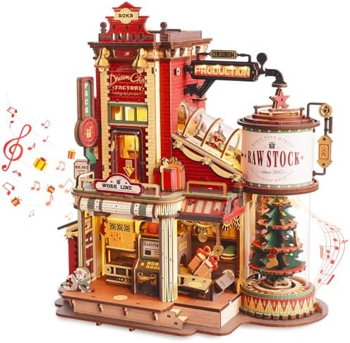 - 【Build a Gift Factory】Assemble your own wooden gift factory with 449 natural plywood pieces. Once completed, watch conveyor belts rotate, chimneys glow, and mechanical elves move. Six LED zones sync with holiday music through a single motor system. This is a perfect example of the innovative and interactive 3D wooden puzzles offered by ROKR.