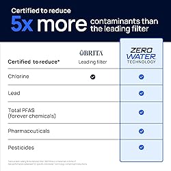 5-stage advanced water filter pitcher: Our filter’s 5-Stage Advanced Water Filtration technology removes 99.9% of dissolved solids – guaranteed. Certified to reduce lead and Total PFAS: This water filter pitcher is certified by IAPMO to reduce Total PFAS (also known as forever chemicals), lead, chlorine, mercury and many other harmful contaminants. Powerful filtration for total confidence: Each water pitcher is equipped with a powerful Culligan with ZeroWater Technology filter, certified to reduce 5x more contaminants than the leading filter. Includes TDS water tester: Our built-in TDS meter measures the level of dissolved solids in your water instantly and alerts you when it’s time to change your filter. When the meter reads 0, that means your filter is removing virtually all TDS from your water. Space-saving design: Our BPA-free pour-through filtered water pitchers and water dispensers fit easily into small refrigerators or stand elegantly on your countertop, saving you space without sacrificing style. Easy to use water filter pitcher: Features a drop-in water filter, easy-slide lid, and ergonomic handle for an easy and convenient pour with every use. Reduce plastic use: Save up to 150 single-use plastic water bottles with this water pitcher for the fridge, or anywhere you place your filtered water pitchers. Compatible with NEW Culligan filters: Compatible with the new Culligan with ZeroWater Technology filters. Not compatible with legacy ZeroWater filters.