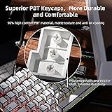 【Graffiti Style Keycaps】The white keycaps is inspired by urban graffiti, Graffiti, the art of visual typography, put it on your keyboard to refresh and enhance your setup! 【Dye Sublimation Keycaps】Advanced dye-sublimation technology allows the color to penetrate into the keycaps, Not only does the 3D visual effect of graffiti appear well on the keycaps, but this visual effect will not fade with prolonged use of the keycaps. 【Thick PBT Keycaps】This keycap set are made of 90% high content PBT material,matte texture,anti-grease coating PBT material that are resistant to wear,high temperature, and solvents. ensure a premium look and better user experience. 【Cherry Profile Keycap Set】The keyboard keycaps designed with the classic cherry profile, it is ergonomic,you won't get tired even if you use it for a long time. 【Ultra-Wide Compatibility】This 134 keys keycap set consists of 108 standard keys and 26 supplementary keys compatible with ANSI layout 61 64 68 84 87 96 98 104 108(60%/65%/75%/80%/100%) mechanical keyboards with MX-stem(cross-shaped) swithes. 【What You Get】 Eco-friendly paper box package that including 134 keys and a keycap puller which can help you remove the key cap from the keyboard, not include keyboard. The keyboard is just for demo not included.