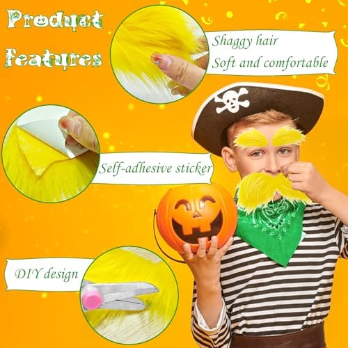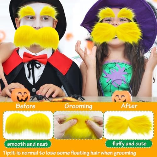 2 Sets Yellow Self Adhesive Mustache and Eyebrows,Faux Facial Hair Halloween Set,Fake Funny Beard Cosplay Costume Accessories for Earth Day Birthday Christmas Party Favor,Adult,Kids,Light Yellow