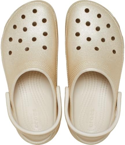 Crocs Women's Classic Platform Glitter Clog, Champagne, 7