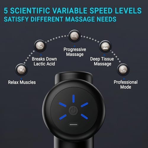- 【5 𝘼𝙙𝙟𝙪𝙨𝙩𝙖𝙗𝙡𝙚 𝙎𝙥𝙚𝙚𝙙𝙨】With 5 adjustable speeds and pressure-sensitive control, delivering precision targeting for muscle relief.
