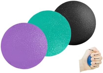 3 Resistance Levels Physical Therapy Hand Ball.Stress Relief Ball.Multiple Resistance Therapy Exercise Gel Squeeze Balls Kits for Hand Finger Wrist Muscles Arthritis Grip Exerciser Strengthening 3pcs A hand ball designed to activate different points in hand. Particle surface increase the agility of fingers and accelerate blood circulation. Excellent indoor equipment for office people, exercing indoors. Squeeze, roll or press the ball to relieve tension and reduce stress. It suits for primary strength training and rehabilitation training. Develop and strengthen grip, hands, fingers, wrists. Relieve stress and muscle tension from computer work. Prevents stiffness, increases flexibility, and reduces joint pain. Size: 5cm / 2inch Color: Purple (slightly soft); Green (moderately hard). Black(firm hard) Weight: 50 g, 1.76 oz of each List Included: *3 x Sticky Thermoplastic Rubber Stress Relief Ball Not include instructions. if you need instructions . please see the picture. NOTE: 1. The balls are sticky. easy to clean. 2. if you think the ball is small. you can use 3 balls at same time. 2.This product is not suitable for children under 13 years of age