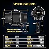 - iPower 6" Quiet Inline Duct Fan with 10-speed Controller, 405 CFM Ventilation Exhaust Fan EC Motor for Heating Cooling Booster, Hydroponics, Grow Tents, Black