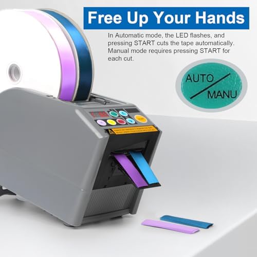 - VERSATILE & EFFICIENT RIBBON CUTTING MACHINE: This innovative tape dispenser and ribbon cutter combines hands-free automatic operation with manual control, making it perfect for a wide range of daily tasks. Whether you're handling shipping, crafting, or office work, this machine adapts to your needs with ease.