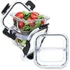 Bariatric Meal Prep Containers, 8 oz Bariatric Portion Control Food Storage Containers with Two 4 oz Compartments (3 Pack), Reusable Glass Snack Containers with BPA Free Airtight Lids