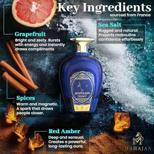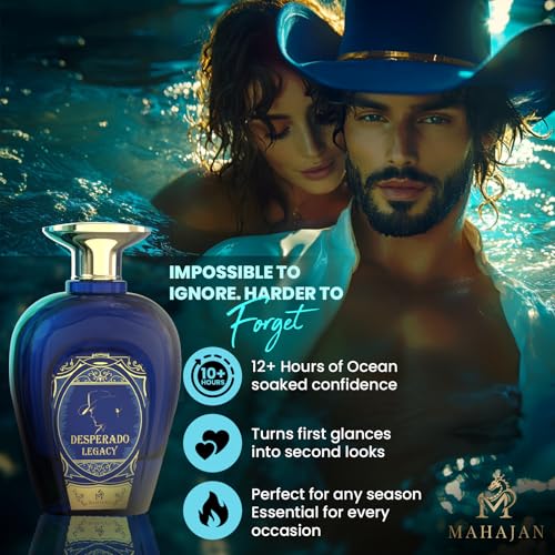 Mahajan Desperado Legacy Eau de Parfum – Ocean Fresh & Addictively Sweet Salted Citrus Cologne – Powerful Head-Turning Long-Lasting Luxury Pefume for Men (3.4 oz)