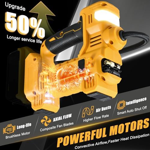 - ATTENTION PLEASE: 𝐎nly tool, 𝐁attery not included!!! Cordless Tire Inflator Air Compressor Compatible with Dewalt 20V MAX lithium-ion batteries.Not included battery and charge