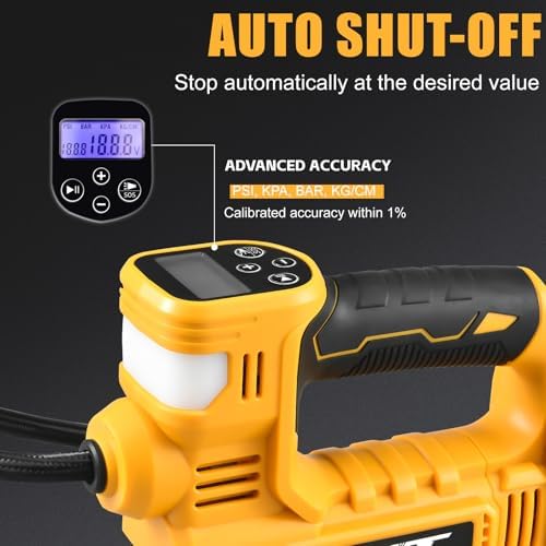 Cordless Tire Inflator Air Compressor for Dewalt 20V Max Battery, 150PSI Portable Air Pump with LED Light,Digital Pressure Display for Cars Motorcycles Bikes Sports Balls(Battery Not Included)