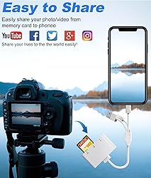 【3-in-1 Universal Compatibility】 This SD card reader for iPhone seamlessly connects to USB-C, Lightning, and USB Type-A devices, covering smartphones, tablets, and computers. Perfect for iPhone 16/15/14 series, iPad Pro/Air/Mini, MacBook Pro/Air, Android phones (Samsung Galaxy, Google Pixel), Windows PC, and DSLR cameras like Canon/Nikon. No more carrying multiple adapters! 【SD/MicroSD/XD Triple Card Slot】Read SD, MicroSD (TF), and xD-Picture Cards effortlessly with dedicated slots. Supports capacities up to 2TB and formats including SDXC/SDHC/SD/MMC/xD. Ideal for photographers transferring RAW/JPEG files or 4K videos from cameras like Fujifilm FinePix (xD-Picture Card compatible). 【High Speed Transfer】 With high speed data 40 MB/s ~ 60 MB/s transfer speed of this SD card reader, allowing you to transfer large amounts of photos and files in seconds. You can save a lot of waiting time. (NOTE: The final data speed is decided by the card and USB slot Type ). 【True Plug & Play Simplicity】 Zero drivers needed! Available for iOS, iPad OS, Mac OS, Android, Chrome OS, Windows and Linux systems. The ultimate lightning to SD card reader for on-the-go file access – just plug into your iPhone's charging port and browse files in the native Photos/Files app. 【High Quality Material & Compact & Portable】The SD card reader for iPhone has a built-in reinforced cable with tinned pure copper core. The rugged case of the SD card adapter to iPhone features heat-resistant connectors that ensure high data transfer efficiency and extreme durability of the micro sd card reader. SD card reader usb c is compact and lightweight, easy to carry around. Whether you are at home, in the office, or on a business trip, it is the best choice for you to use.