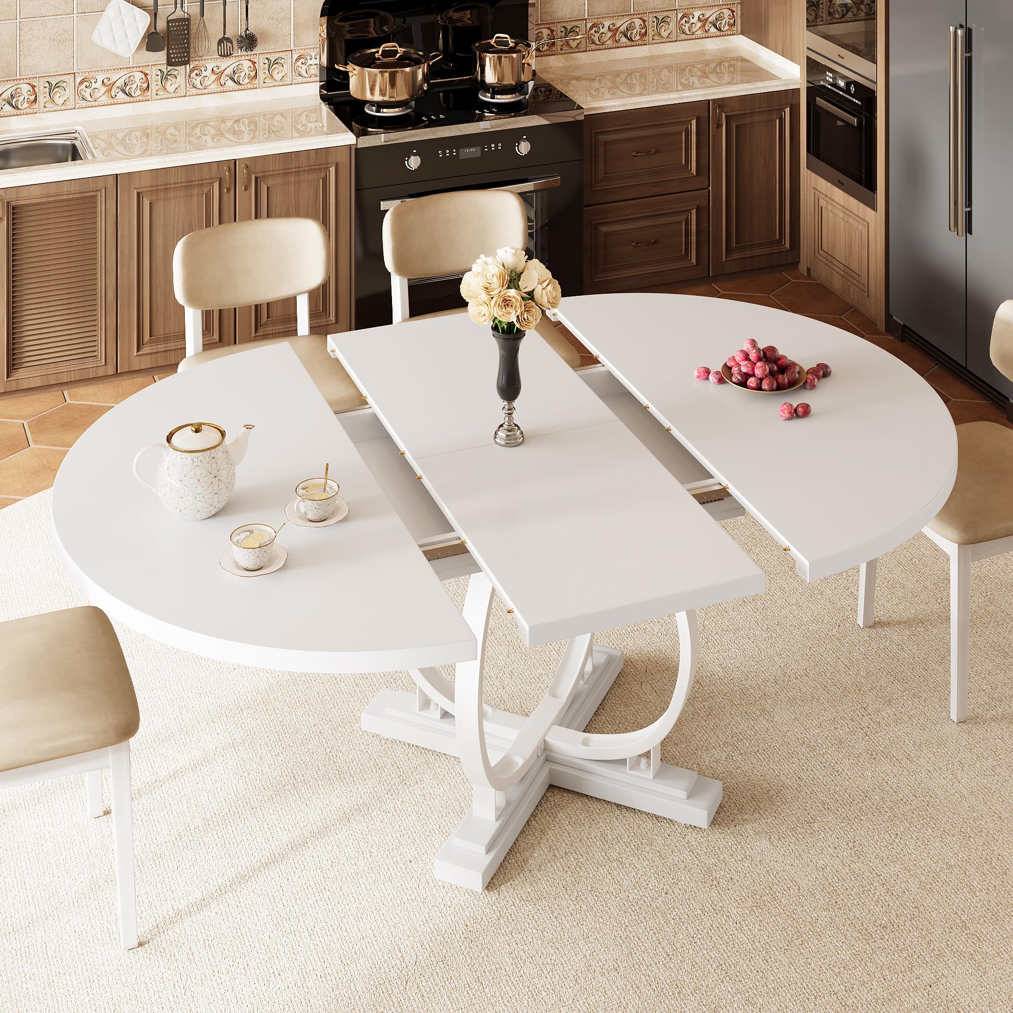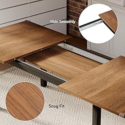 Package Note: The table and chairs will be delivered in 2 packages, they may not arrive at the same time, so please wait patiently Modern Dining Table and Chairs Set: This dining table set contains 1 table and 6 chairs. Table size: : 47.3"L x 31.5"W x 30"H (Shrink); 63"L x 31.5"W x 30"H(Expanded); Chair Size: 34.2"H x15.7"W x 18"L. It has a wide range of uses, which can be used for home, kitchen, living room and dining room, etc Perfect for 4-6 Persons: This classic and chic dining table and chair set is perfect for family and friend gatherings,the extendable design just 1 person can quickly extend the table to a maximum of 63''(5¼ft) for a meal, no need to worry about crowded seats, enjoy a homey and happy meal Thickened Durable Structure: This kitchen table and chair set is made of MDF board with a reinforced metal structure, ensuring robust stability, which provides strong weight-bearing capacity(Table: 330lbs; Chair: 330lbs). With anti-slip foot pads, don't scratches on your floors when you move it Thoughtful Design: With corner protection in this dining table, and an arc design in the dining chair, protect your family from sharp collisions. Besides, the middle backrest is in sync with the natural curvature of the spine, so it is ergonomically designed to bring you a cozy backrest experience Space-Saving for Small Space: Equipped with the track this dining room table can be shrunk fit tightly when not in use. Dining chairs can be moved under the dining table, utilize space well and say goodbye to clutter Easy Assembly and Clean: With exquisite hardware and a detailed installation manual, all parts are listed and numbered, and quick to assemble in less than 45 minutes. Splashproof treated surface is waterproof and scratch-resistant, after use just wipe it, clean as before