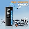 - 𝐒afe and 𝐄asy - This portable tire inflator for car tire features 4 preset modes for car, motorcycle, bike, ball and customized modes up to 150PSI. Simply connect the air hose to the tire, use the “+” and “-” to set the pressure value, press the “start” button on the cordless tire inflator, and you can easily inflate the tire quickly. It will automatically turn off when the set pressure value is reached.