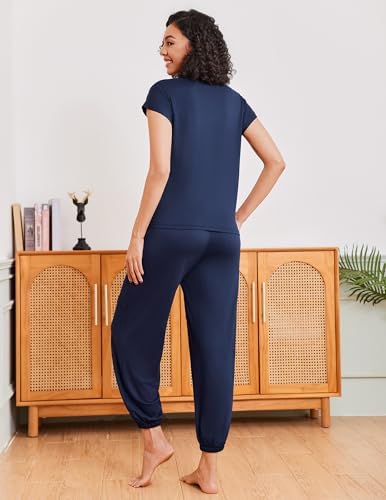 Ekouaer Pajamas for women 2 Piece Lounge Set Cap Sleeve Sleepwear Joggers Pants Pjs with Pockets S-XXL