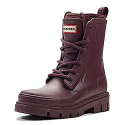 WATERPROOF: Experience unbeatable protection with our waterproof construction, designed to block water from penetrating your footwear, our technology ensures your feet stay dry and comfortable, no matter the weather Heel Height: 1 1/8 in. CUSHIONED COMFORT: Hunter’s comfort technology absorbs step shock and provides long-lasting cushioning EASY TO FIT, EASY TO WEAR: Perfect for on-the-go adjustments, the lace closure ensures a secure, customizable fit that is ideal for maintaining comfort throughout the day FLEXIBILITY: Optimized Flexibility for Active Lifestyles, experience superior movement and enhanced comfort with our shoes, designed for dynamic flexibility and support in every step