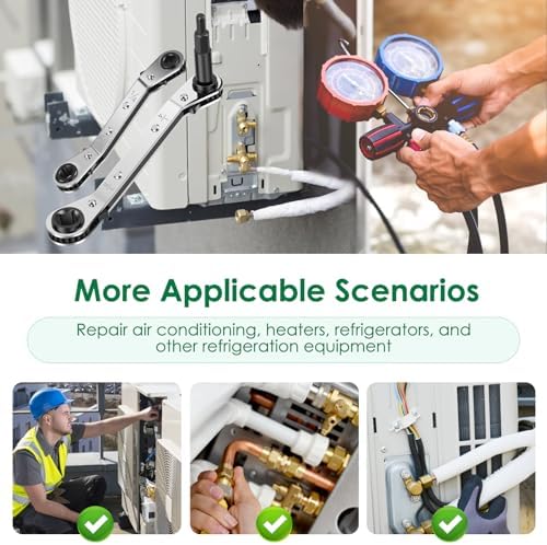 - Convenient: The ratchet service wrench is more efficient and provides a smoother service action. It does not need to be disassembled all the time for automatic adjustments. The air conditioning tools are designed for maintenance and use. They are compatible with air conditioning; refrigeration and other equipment
