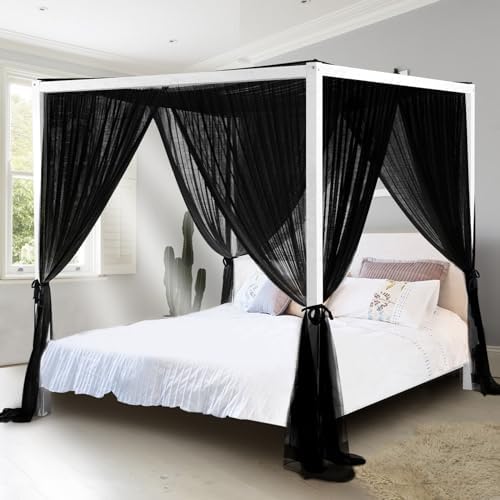 tupi Canopy Bed Curtains for King/Queen Size Bed, 4 Poster Bed Canopy, 4 Corner Canopy Curtain with 4 Openings, Ultra Ripstop Polyester, Easy Installation