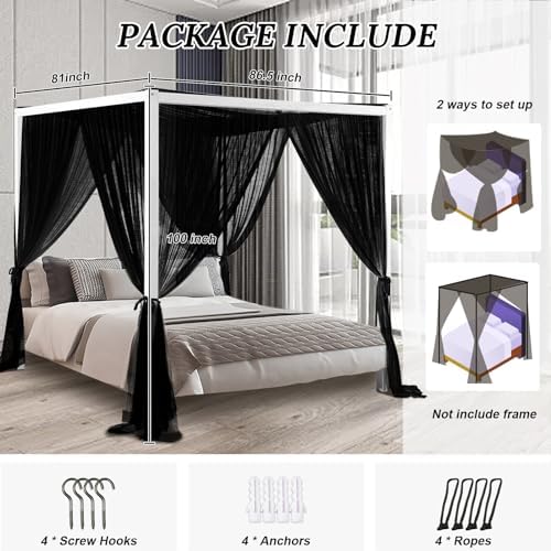 - PREMIUM MATERIALS: The 4 corner post bed canopy is crafted from ultra ripstop polyester, ensuring its durability, softness, and eco-friendliness. The 50D quality dust-proof mesh, featuring 380 meshes per sq inch, allows for natural drape and optimal ventilation, and gives you a peaceful, relaxing sleep.