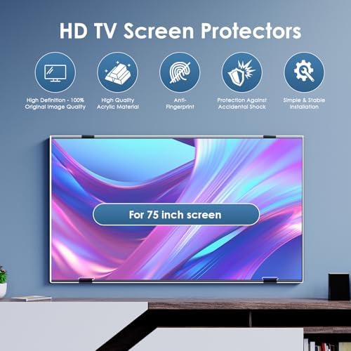 - Excellent Protection Performance: Crafted from premium acrylic, this TV screen protector provides exceptional scratch and wear resistance, ensuring your 75-inch TV screen remains in pristine condition. Designed to fully protect your 75-inch TV, this TV display protector offers robust defense against scratches and daily wear, maintaining the high-definition picture quality you love