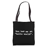 You Had Me At Hello World - Funny Computer Coding Text Humor Tote Bag