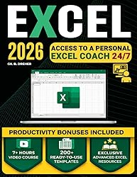 - MASTER EXCEL WITH CONFIDENCE. THE COMPREHENSIVE GUIDE FEATURING YOUR 24/7 AI PERSONAL COACH TO UNLOCK YOUR FULL PRODUCTIVITY POTENTIAL Are you tired of wrestling with formulas that refuse to work? Do you ever wonder how much more you could achieve if Excel felt like an ally rather than an obstacle? Imagine the advantage of having a seasoned mentor by your side, someone who ensures you never waste another hour searching for a solution or struggling with a broken formula.This is the core of the Excel 2026 Ecosystem. Gil B. Dreher has designed this system to bridge the gap between static theory and real-world application. While traditional manuals overwhelm you with endless text, this guide solves the primary frustration of data management: the loss of time.By breaking down complex logic into clear, visual workflows, this book serves as your strategic map. It replaces confusion with clarity, helping you master high-impact tools like XLOOKUP and Pivot Tables through practical, results-driven lessons. But we knew that even the best map isn’t enough when you hit a specific roadblock. That is why we took this system a step further... THE GAME CHANGER: YOUR 24/7 AI EXCEL COACH INCLUDEDThe biggest challenge in learning Excel is getting stuck. That’s why this book includes a unique interactive bonus. Inside, you’ll find a QR code to access your exclusive AI Excel Coach.This dedicated AI mentor is available 24/7 to:Troubleshoot your specific formulas when you get an error.Guide you through complex tasks mentioned in the book.Provide instant support tailored to your current project. It’s the ultimate bridge between theory and practice, ensuring you never feel lost again. While the Coach handles your immediate hurdles, the book provides the solid foundation and premium resources you need to build lasting expertise:CORE MASTERY: Logic-based guides to XLOOKUP, VLOOKUP, and Pivot Tables.VISUAL IMPACT: Step-by-step tutorials for Dashboards and Professional Charts.PRODUCTIVITY HUB: 200+ Templates, 7+ Hours of Video Training, and Exclusive Advanced Excel Resources. WHY CHOOSE GIL B. DREHER? Because learning should be interactive, not frustrating. Unlike generic manuals, this ecosystem is built to turn you into a confident problem-solver. Stop wasting hours on Google and YouTube. Master the tools of the future with a guide that offers a live AI support system. Scroll up, click "Buy Now," and experience the future of Excel learning today!