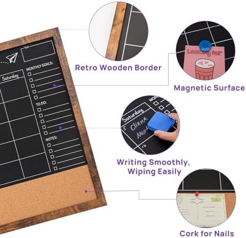 - Multi Functional Blackboard: 2-in-1 versatile chalkboard calendar features a monthly calendar & softboard and a magnetic surface. You can make plans and mark important matters on black board calendar