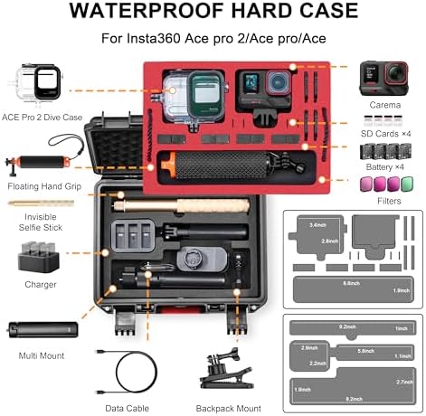 - 【Unbeatable Protection】This IP67 waterproof case for Insta 360 ACE PRO 2/PRO is impact-resistant, dustproof, and scratch-proof. Ideal for organizing and protecting gear during outdoor adventures.