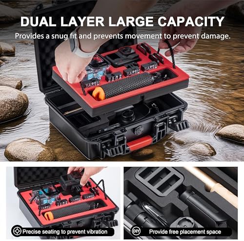 - 【Double Lined Design】Optimize storage for Insta360 ACE Pro 2 accessories with our double-layered case. The top layer fits 1 camera, 4 batteries, 1 charger hub, and 1 selfie stick (max 9.25"). The bottom holds handles, tripod, dive case, reader, mount, and more.