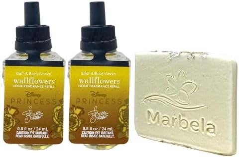 • Bath & Body Works Princess Collection Belle Wallflowers Home Fragrance Refill Bulbs with a Marbela Natural Oats Sample Soap (Soap May Vary).