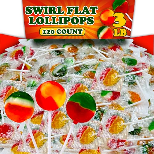 Bulk Lollipops Individually Wrapped Candy, 3 Lbs Assorted Flavored Suckers, Mixed Fruit Swirl Colors, Classic Round Flat Candy Pops, Bulk Easter Candy for Kids, Pinatas