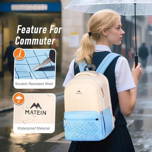 MATEIN Lightweight School Backpack, 15.6 Inch Cute Laptop Backpack with Water Bottle Pocket, Waterproof College Computer Bag Preppy Aesthetic Bookbag Daypack for Teen Girls Middle High School Students