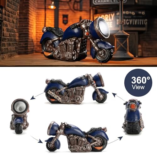 Solar Outdoor Garden Motorcycle Statue, Resin Motorcycle Sculpture with LED Lights, Ideal for Garden, Courtyard and Lawn Decoration, Housewarming and Birthday Gift