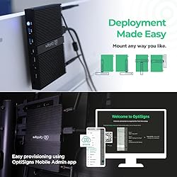 Optimized for Digital Signage, Suitable for digital signage use, fully support all OptiSigns features, apps. Easy Setup and manage from anywhere, pre-installed OptiSigns Player, manage your screen from OptiSigns portal or OptiSigns Admin app. Lots of Integrations,160+ apps help you quickly and easily put useful content on the screens Easy Content Creation, 5000+ ready to use templates and easy to use designer help you design your digital signs in minutes Powerful & Reliable, Intel Pentium Quad-Core CPU, 4GB RAM, 128GB SSD, passive cooling for 24/7 operation, 4K Ultra HD support, seamless connectivity with Wi‑Fi 6, Ethernet, HDMI‑CEC & RS‑232, secure Linux OS with regular updates, smart automation with auto power‑on & RTC wake‑up, compact design for easy integration. OptiSigns subscription needed. Free plan available for up to 3 screens with OptiSigns branding.