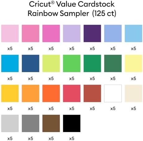 Cricut Value Cardstock Paper, Rainbow Sampler - 125 sheets (8.5" x 11") - Compatible with Joy Xtra, Explore, & Maker Machines - Letter Size