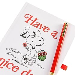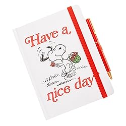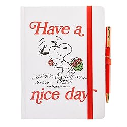 FUN & FUNCTIONAL: Wrapped in linen fabric, this Have a Nice Day hardcover journal celebrates Peanuts 75th Anniversary ENHANCED WRITING EXPERIENCE: Includes a coordinating 5.5” twist pen secured by an elastic loop, ensuring your thoughts flow effortlessly onto the 160 lined pages THOUGHTFUL DETAILS: A ribbon bookmark allows you to easily find your place, while the elastic closure keeps your journal pristine and your secrets safe CHERISHED KEEPSAKE or GIFT: This Peanuts journal is ideal for recording memories, inspirations, and dreams; give as a treasured present for someone special that has a fondness for Charles Schulz’s classic cartoons YOUR STATIONERY BOUTIQUE: Graphique creates fine designer cards, calendars, notes, folders, journals, and more for a stylish presentation that expresses who you are; our goal is to design the fashion accessories that help add confidence and flair to your day and keep you organized at the same time