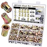 ASKWAY 370PCS Rivet Nuts, Metric Thread Rivet Nut Assembly Kit, Carbon Steel Rivet Nuts, Suitable for Automotive, Furniture Decoration, Sheet Metal Assembly and Industrial Products